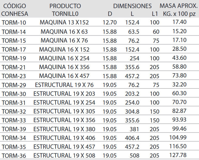 Tornillo estructural cabeza hexagonal tipo T pesado, con rosca UNC 2A,